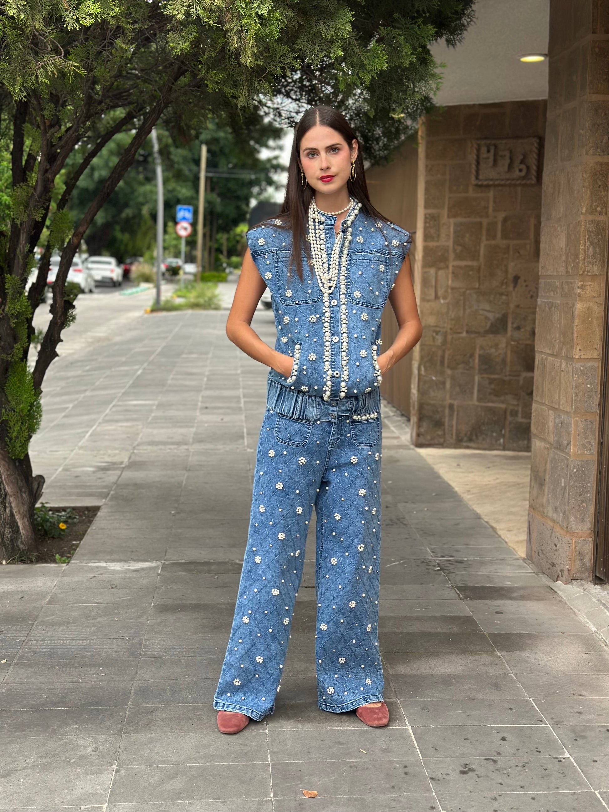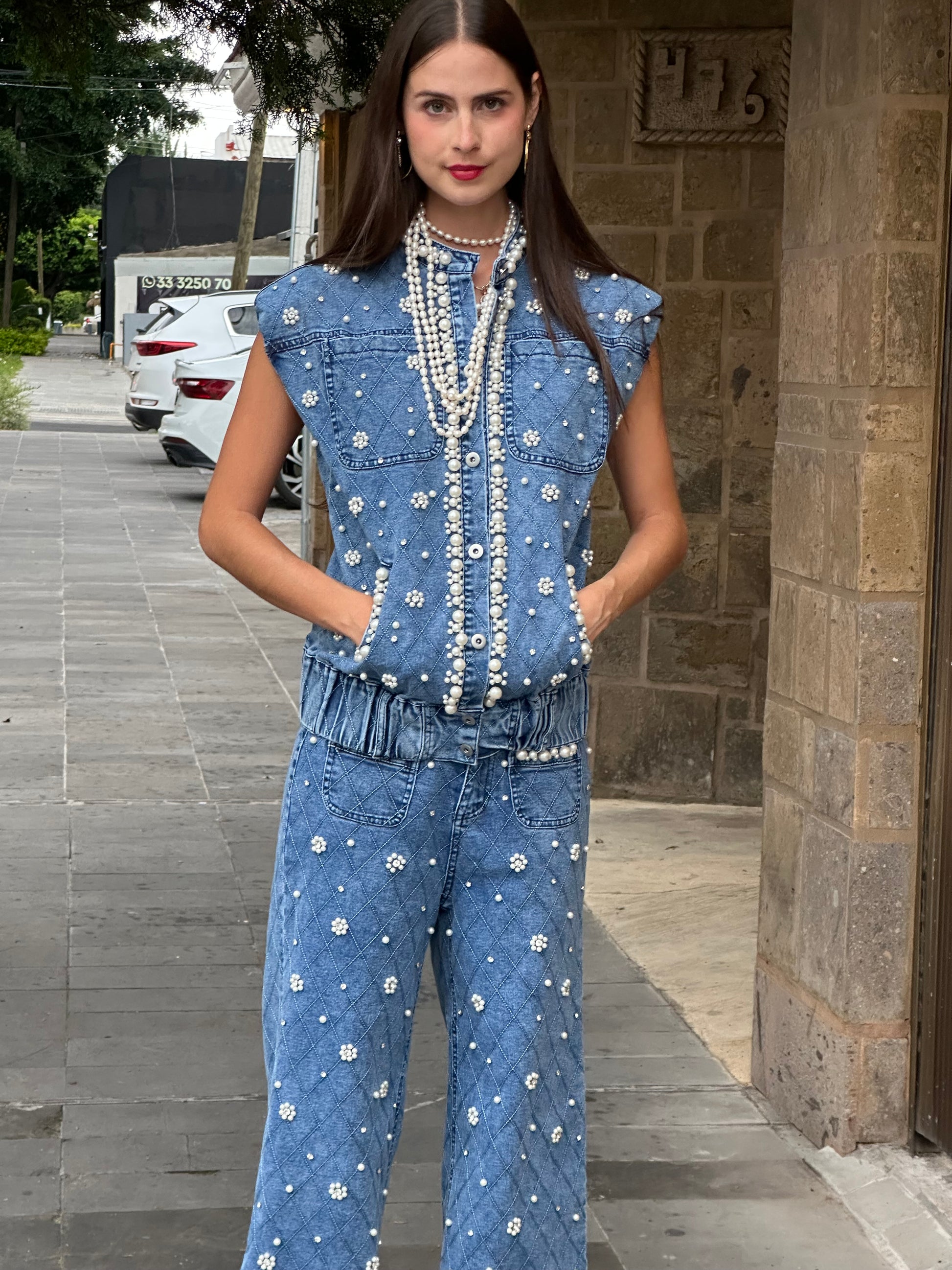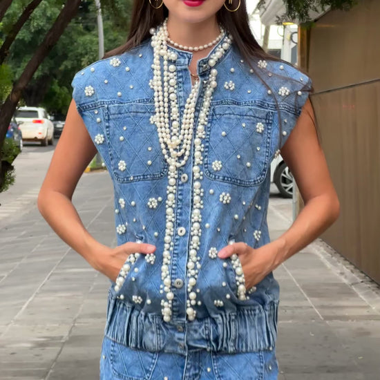 Chaleco De Mezclilla Con Perlas ZCMP5960